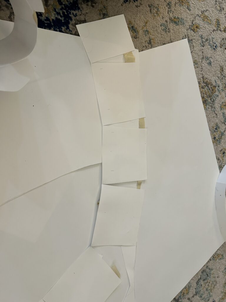 After chatting with the designer regarding the shape I made small changes to the pattern. I added 1/4″ to the band, as well as to the spires. I also flared the spires out from the bottom and widened them at the top.