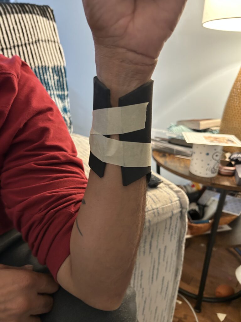 I also added strips of rubber shelf lining in the wrist area to help aid in the arm bracers shifting on the arms.